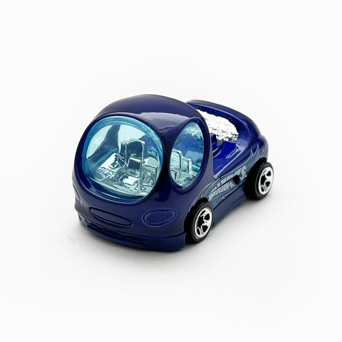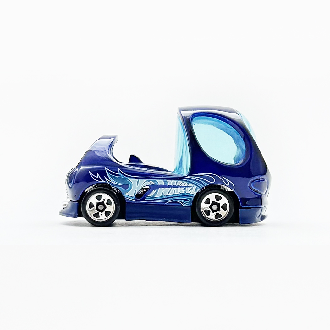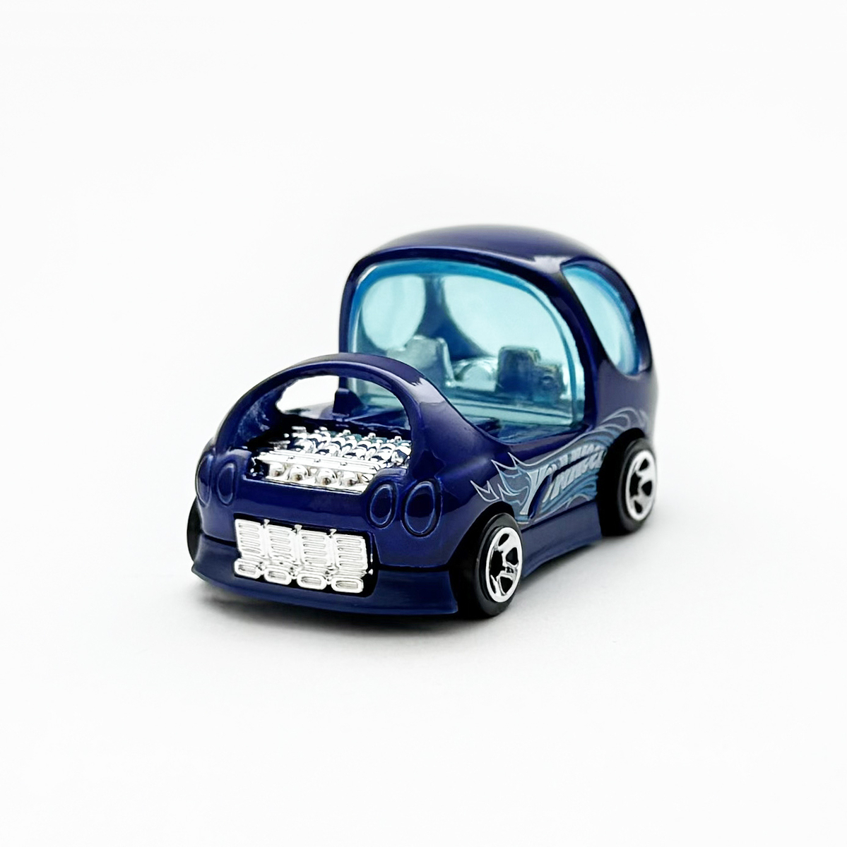 サイドには、"HOT WHEELS"ロゴとホワイトのピンストライプスフレイムス、"DEORA II"定番のデコレーションで、実車でも採用されているデザインです。